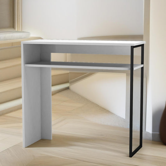2 Tier Hallway Console Table With Steel Frame White