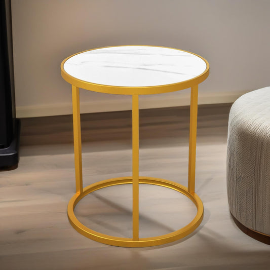 Set Of 2 Faux Marble Round Bedside Nightstand Table Gold