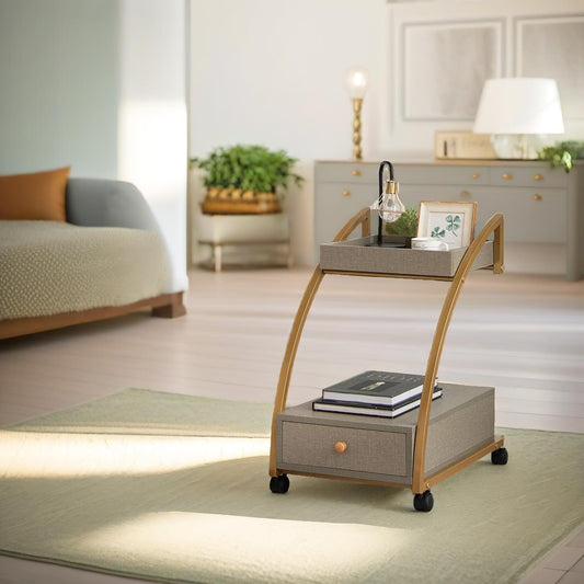 Rolling Bedside Nightstand Table With Drawer Gold