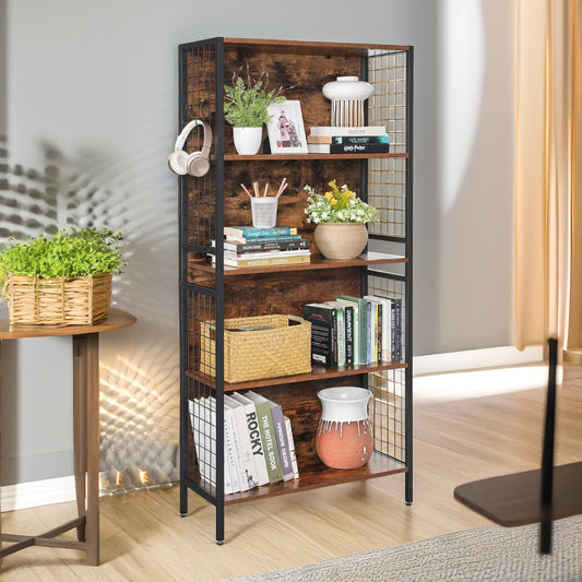 4 Tier Industrial Storage Bookcase Shelf Rustic Brown