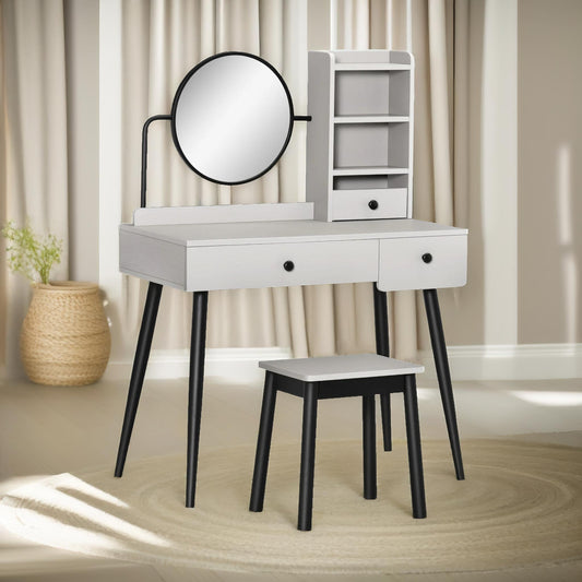 Dressing Table With Mirror And Stool Grey