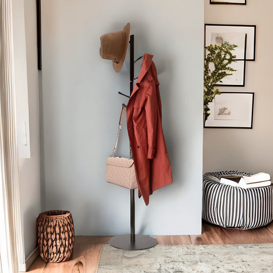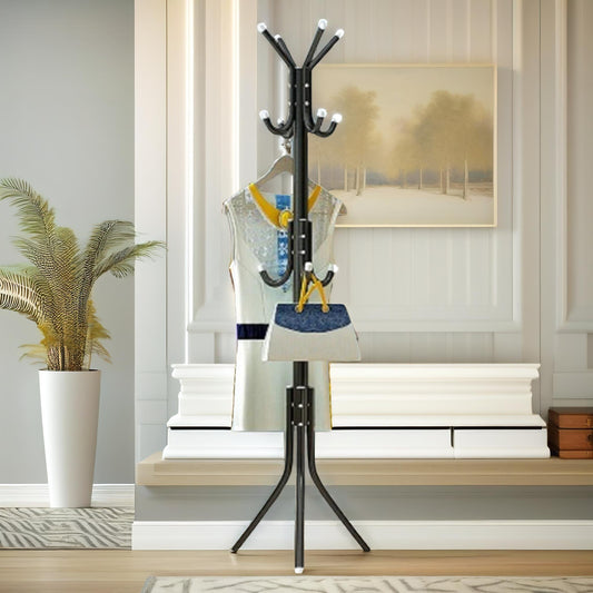 Adjustable Metal Coat Stand With 8 Hooks Black