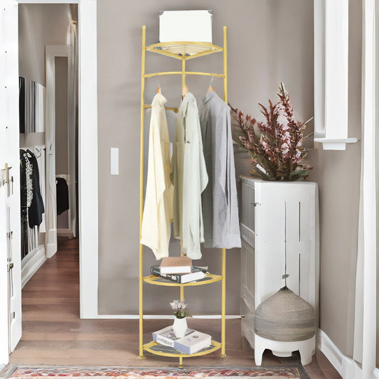 Corner Coat Stand With Shelves Gold