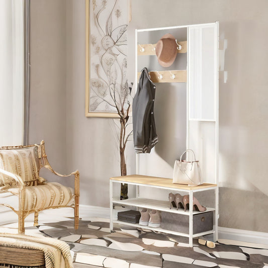Hall Tree Coat Stand With Shoe Bench and Mirror Oak