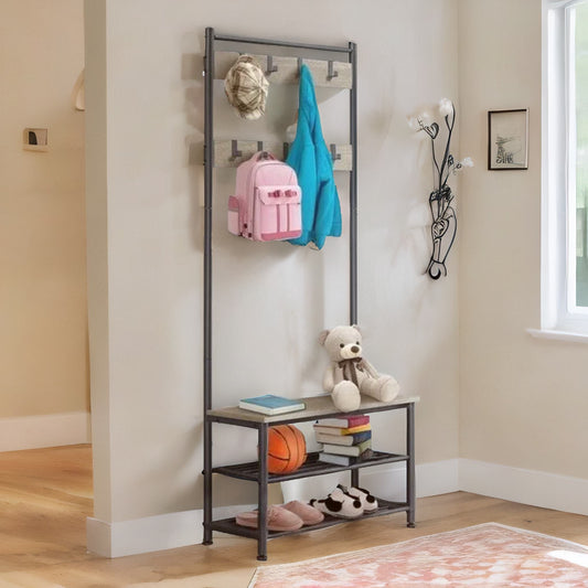 Hall Tree Coat Stand With Shoe Storage and Hooks Brown