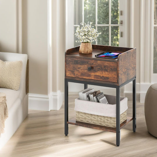 Bedside Nightstand Table With Drawer Rustic Brown