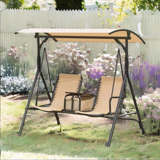 2 Seater Garden Swinging Chair With Pivot Table Beige
