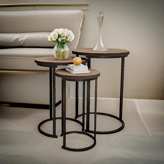 Set of 3 Bistro Set With Round Mosaic Table And 2 Armless Chairs Brown
