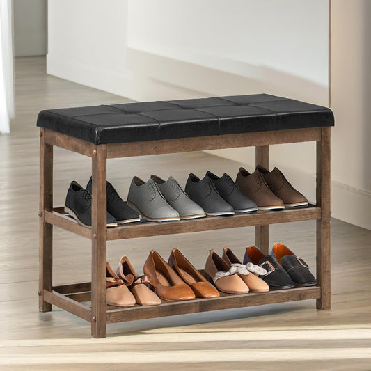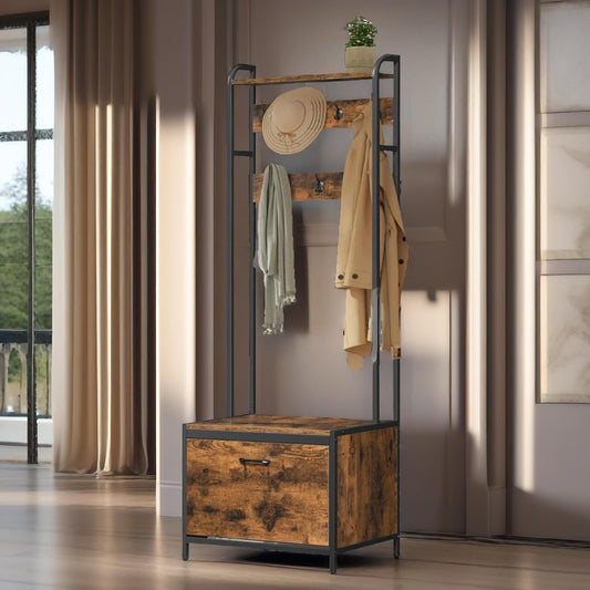 Industrial Coat Rack Stand With Shoe Storage Brown
