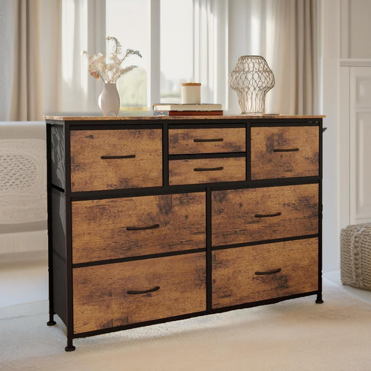 Bedroom Chest With 8 Fabric Drawers Rustic Brown