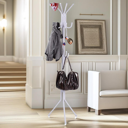 Industrial Coat Rack Stand With 2 Shelves & 8 Hooks