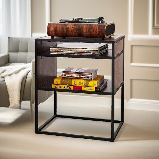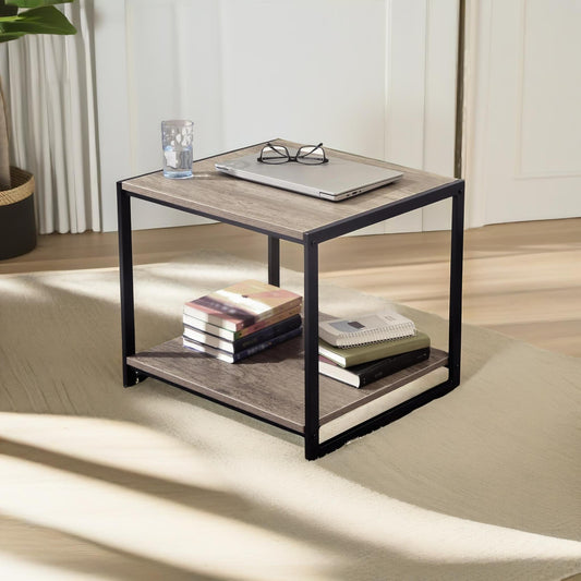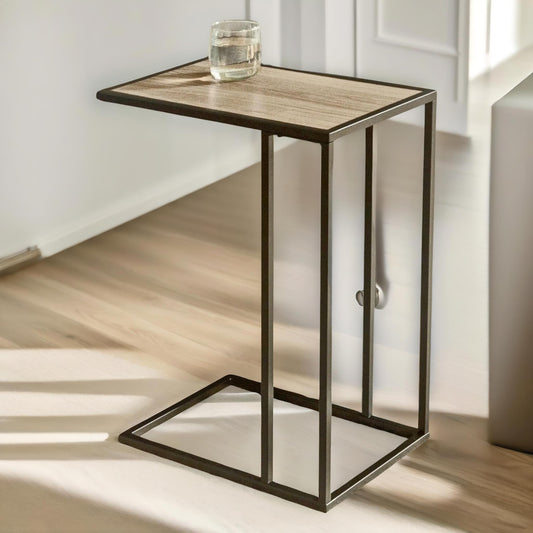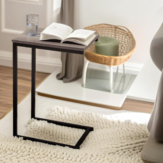 60CM Tall Industrial C-Shaped Sofa End Table Brown
