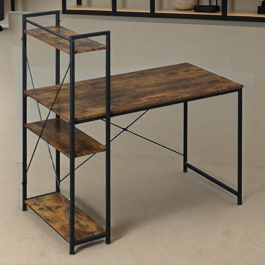 Indusrial 4 Tier Computer Desk With Shelves Rustic Brown