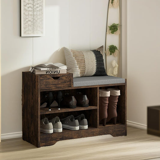 Industrial Shoe Storage Bench With 3 Open Shelves Rustic Brown