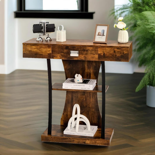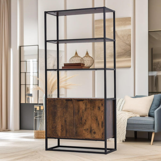 Industrial Storage Cabinet With 3 Open Shelves Rustic Brown