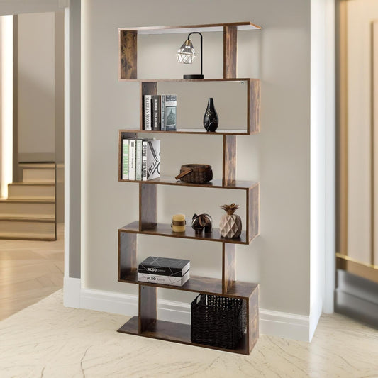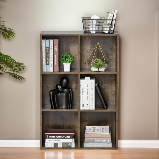 Industrial 6 Compartment Book Shelf Rustic Brown