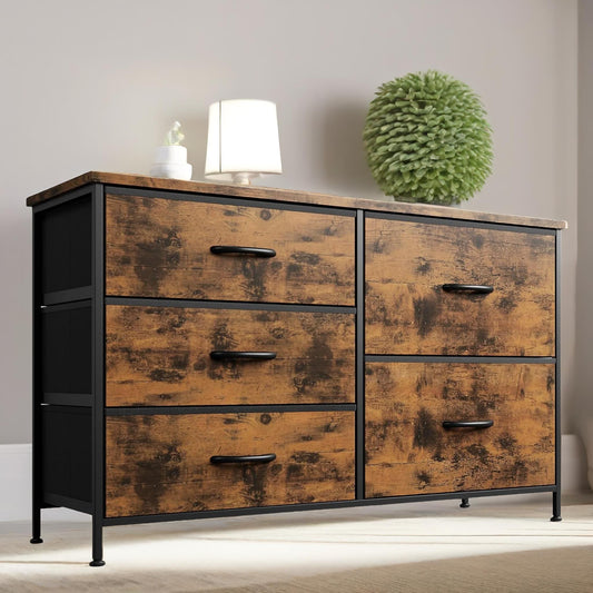 Bedroom Dresser With 5 Fabric Storage Drawers