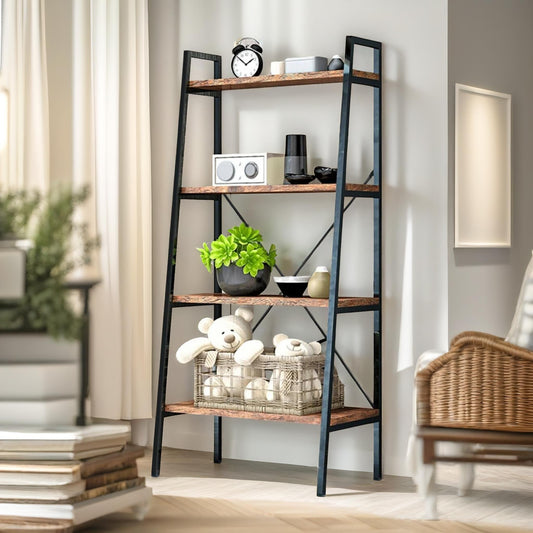 4 Tier Free Standing Ladder Shelf For Living Room Storage Rustic Brown