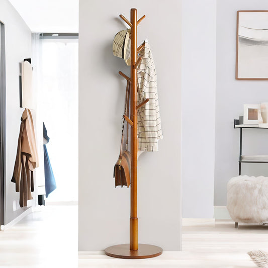 Adjustable Wooden 8 Hook Coat Stand With Round Base