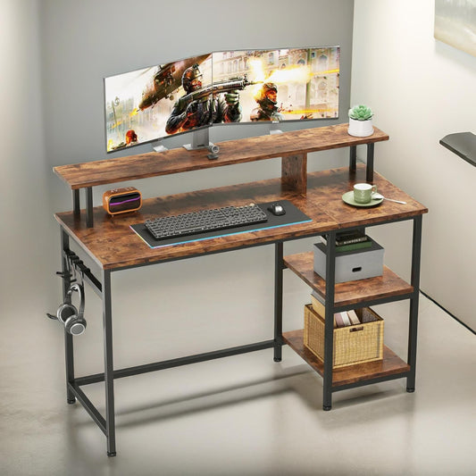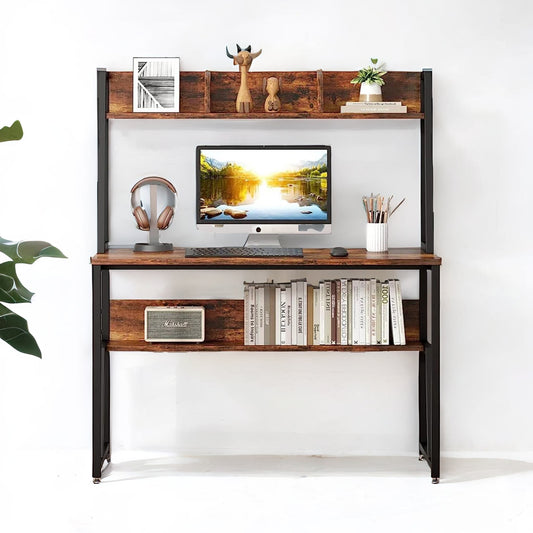 Industrial 107CM Computer Desk With Monitor Stand And Shelves Rustic Brown