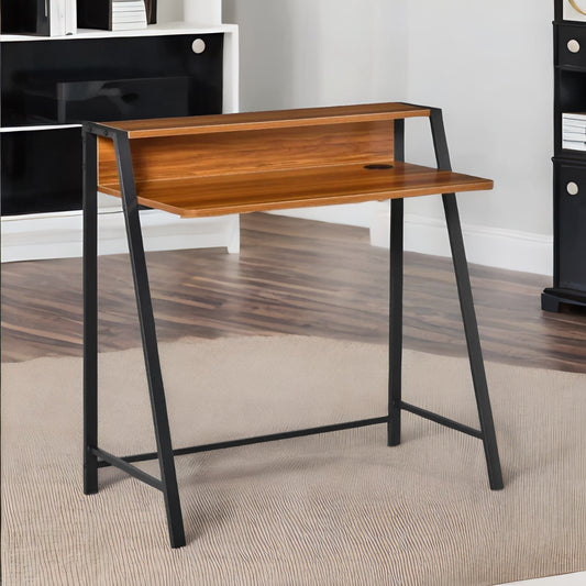 Industrial Rustic Computer Desk With 2 Shelves Black