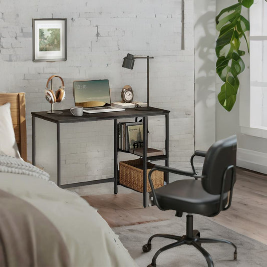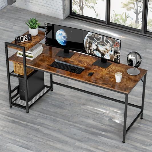 Industrial 120CM Wide Computer Desk With Storage Shelves Rustic Brown