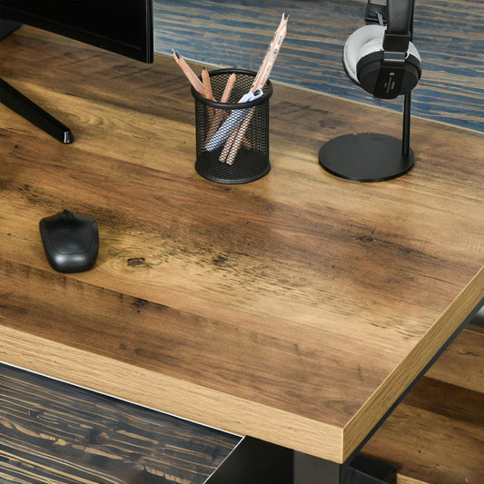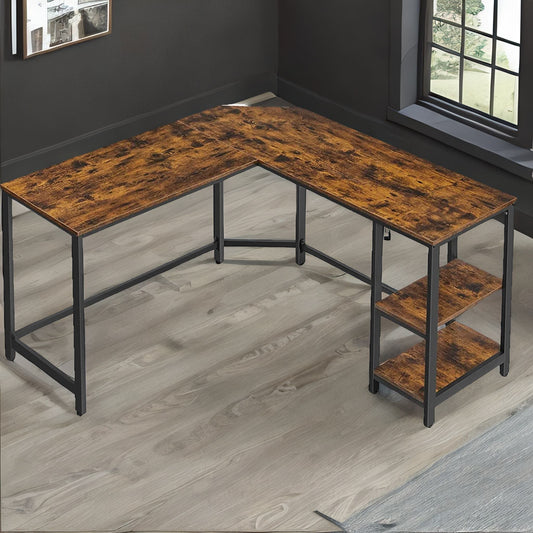 Industrial Rustic L-Shaped Corner Computer Desk Brown