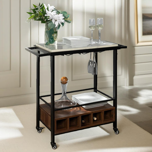 Rolling Kitchen Trolley With Wheels Rustic Brown