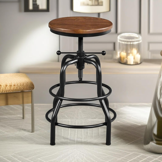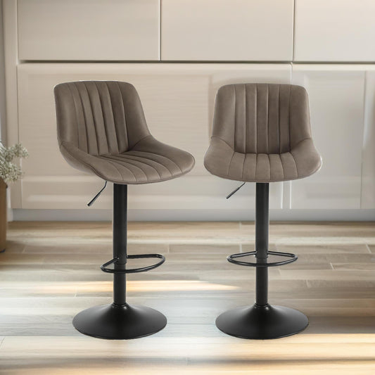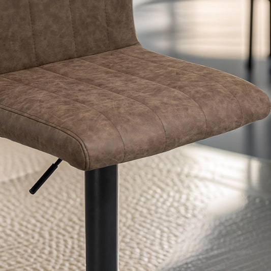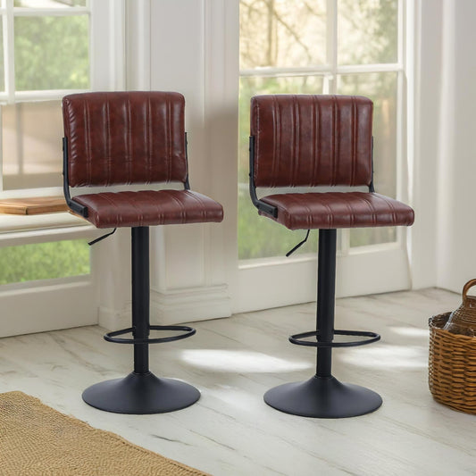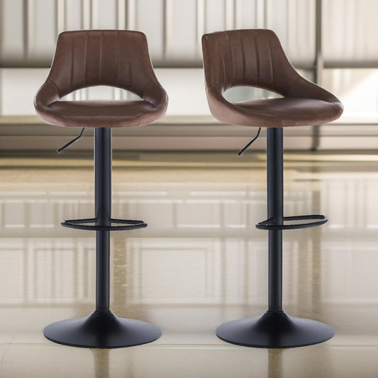 2PC Height Adjustable PU Leather Swivel Barstools Set Brown