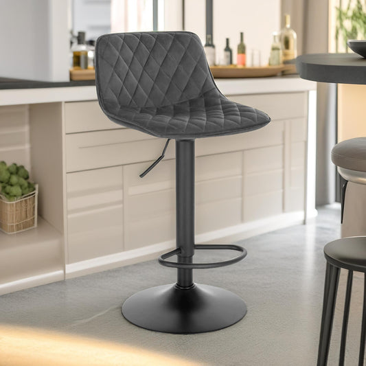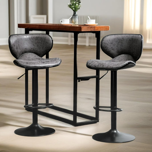 2PC Height Adjustable 360 Swivel Barstools Set With Backrest Grey