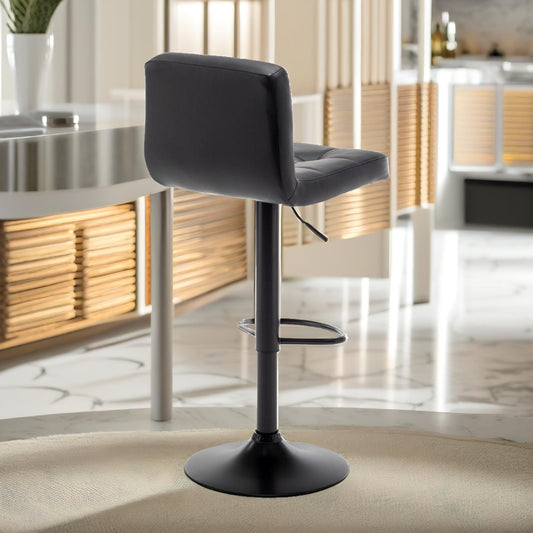 Set Of 2 Height Adjustable 360 PU Leather Swivel Barstools Dark Grey