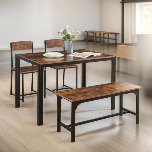 Industrial Compact Dining Table Set With 1 Bench And 2 Chairs Rustic Brown