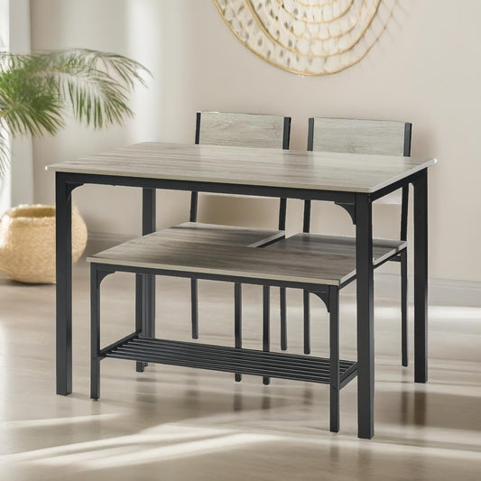 Industrial Compact Dining Table With 1 Bench & 2 Chair Set Grey