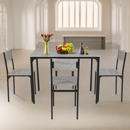Industrial Dining Table With 4 Chairs Set Wood Effect Brown