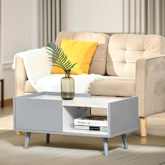 Faux Marble Coffee Table With Storage Shelf and Drawer Grey