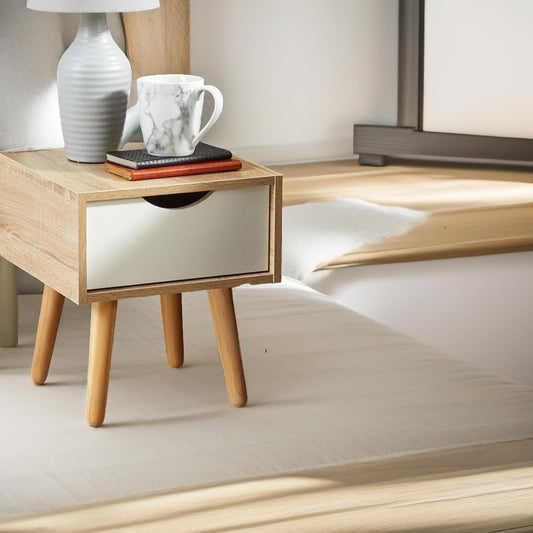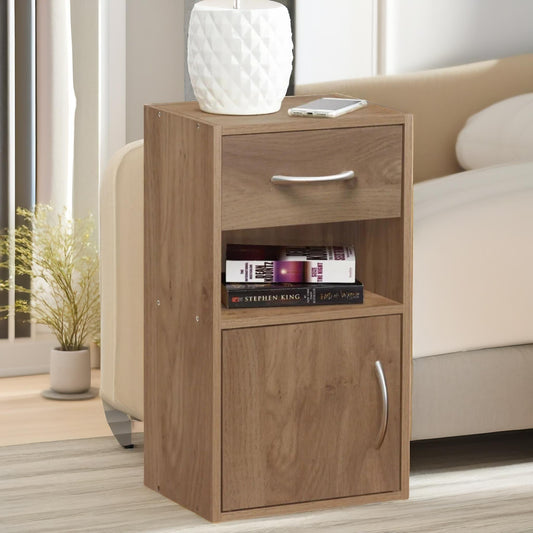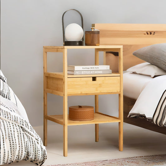 Bamboo Bedside Table With Drawer and Shelf Natural Brown