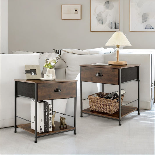 Set Of 2 Industrial Bedside Nightstand Tables With Drawer Brown