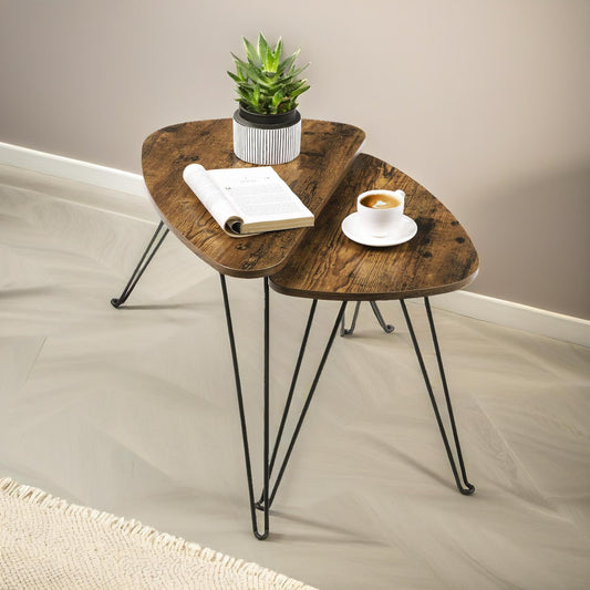 Set Of Nesting Coffee Side Tables Rustic Brown