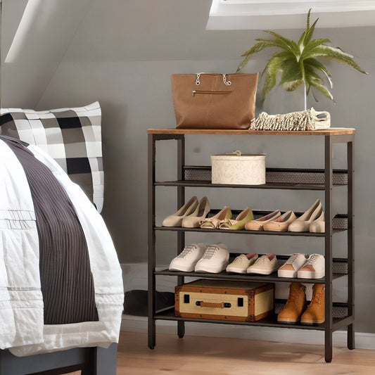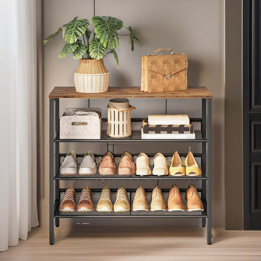 4-Tier Shoe Rack with 3 Adjustable Mesh Shelves