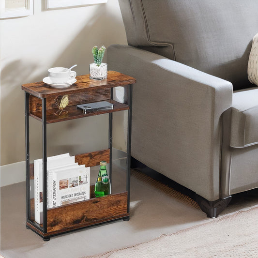 Industrial Rustic 3 Tier Side Table With Magazine Rack