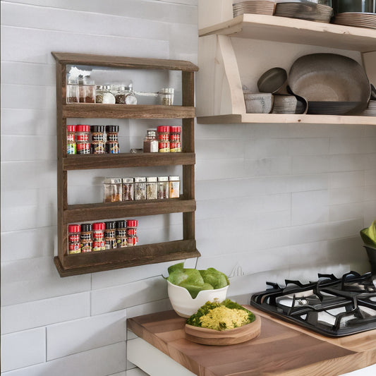 5 Tier Countertop Wall Mounted Wooden Spice Rack Brown