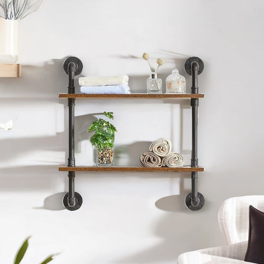 Industrial Pipe Wall-Mounted 2 Tier Floating Shelves