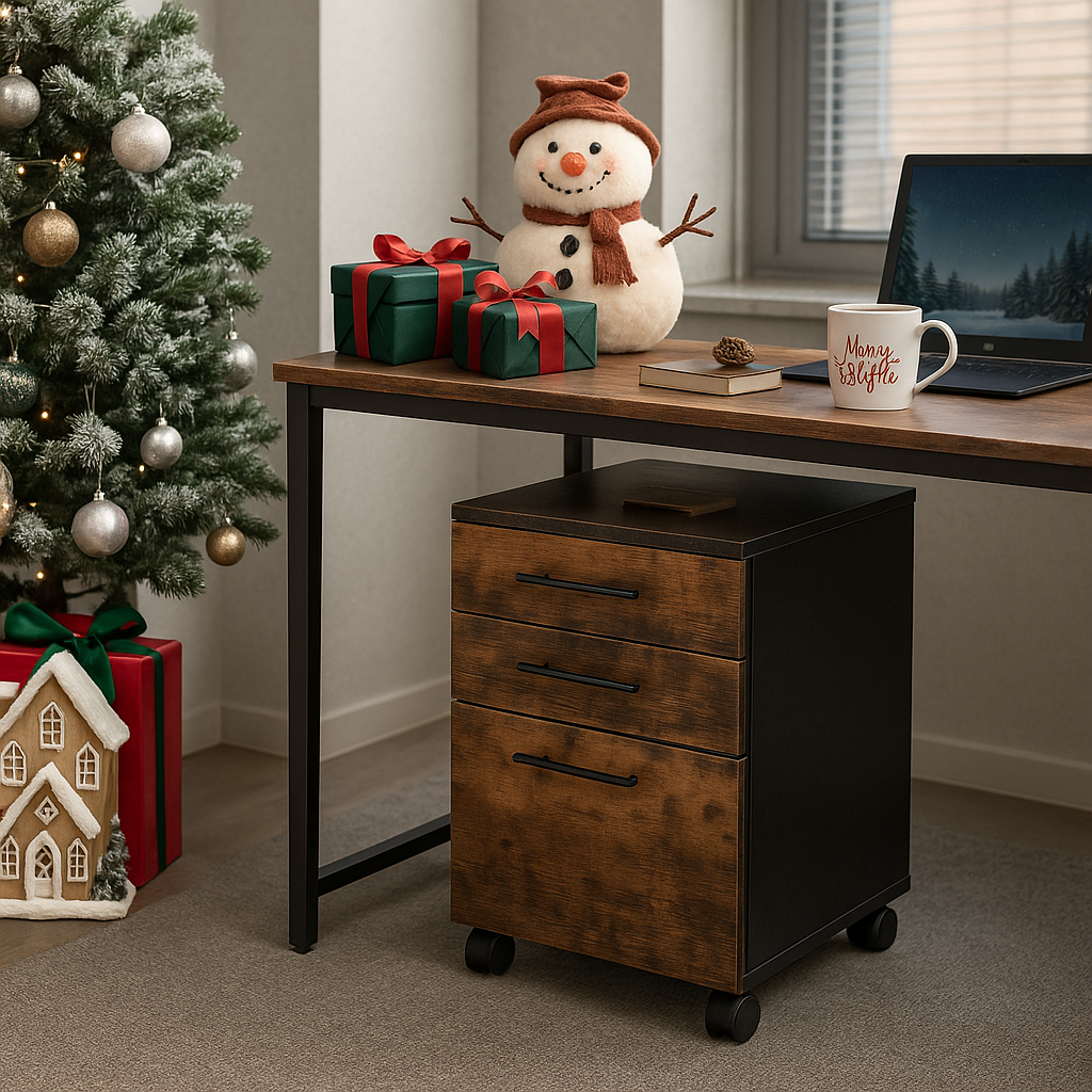 Effortless Mobility with Five Casters: Equipped with five 360-degree rotating casters, including two lockable ones, this file cabinet glides smoothly for maximum manoeuvrability. When locked, it remains securely in place under your desk, and the central caster prevents any tipping when the bottom drawer is fully extended.
