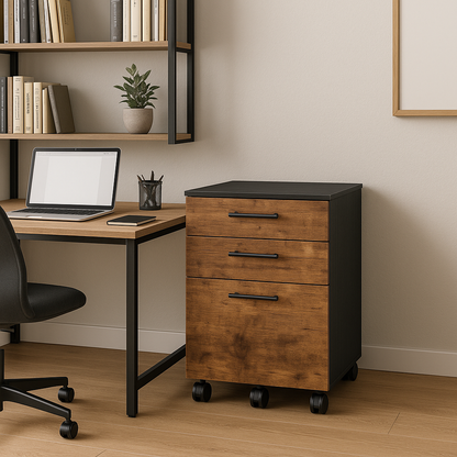 Exceptional Quality and Stable Design: Elevate your workspace with this industrial-style filing cabinet that seamlessly combines retro aesthetics with sleek black panels. Crafted from top-quality materials, this cabinet not only exudes visual appeal but also offers robust strength and stability.